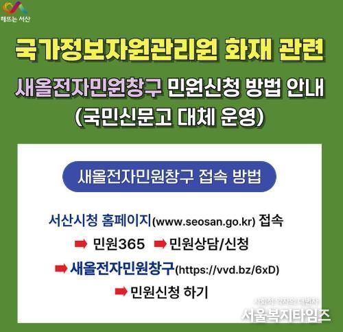 서울복지타임즈 이재연 기자 | 충남 서산시가 국민신문고 서비스의 일시 중단에 따른 시민 불편 최소화에 나섰다.