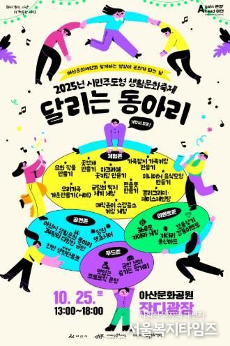 서울복지타임즈 이재연 기자 | (재)아산문화재단은 오는 10월 25일 13시부터 18시까지 아산문화공원 잔디광장에서 시민이 주체가 되어 즐기는 ‘2025년 시민주도형 생활문화 축제 '달리는 동아리'’를 개최한다.