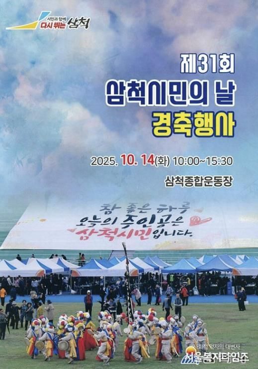 서울복지타임즈 이재연 기자 | 삼척시민의 단결과 화합, 애향심과 자긍심을 고취하기 위한 제31회 삼척시민의 날 기념 경축 행사가 오는 10월 14일 오전 10시 삼척종합운동장에서 열린다.