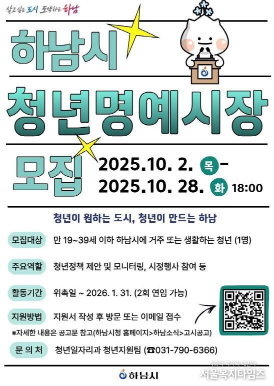 서울복지타임즈 이재연 기자 | 하남시가 청년의 시선으로 시정을 함께 만들어갈 ‘청년명예시장’을 오는 10월 28일까지 공개 모집한다.