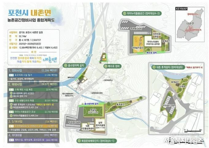 서울복지타임즈 이재연 기자 | 포천시가 농림축산식품부가 추진한 ‘2025년 농촌공간정비 추가공모사업’에 선정되어, 2029년까지 내촌면 일원에서 추진할 공간정비사업 예산 129억 원을 확보했다.