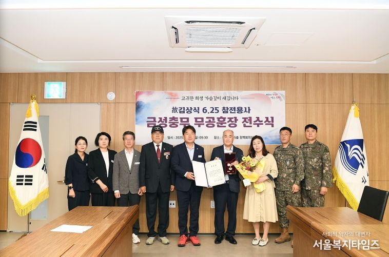 서울복지타임즈 이재연 기자 | 부산 동래구는 지난 13일 6․25전쟁에 참전해 무공을 세운 고(故) 김상식님의 자녀 김형원씨에게 금성충무 무공훈장과 훈장증을 전수했다.