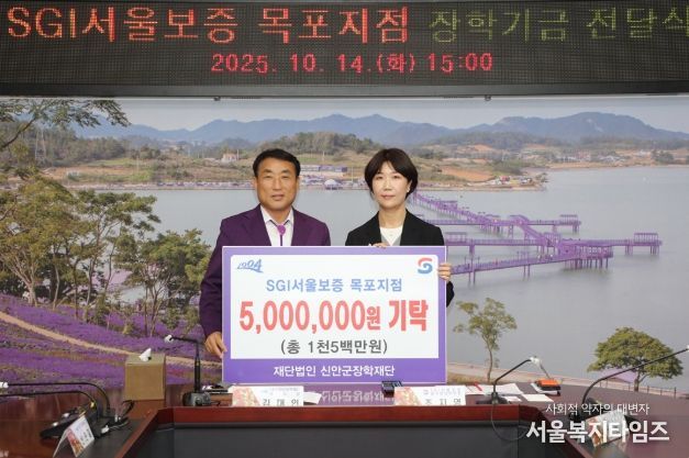 서울복지타임즈 이재연 기자 | SGI서울보증(대표이사 이명순) 목포지점이 10월 14일, 신안군장학재단(이사장 김대인)에 신안군 인재육성을 위한 장학기금 500만 원을 기탁했다.
