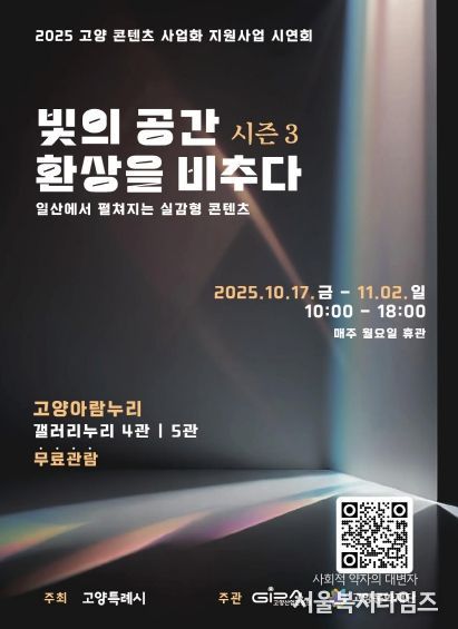 시는 지난 5월 모집 절차를 거쳐 선정된 5개 기업에 총 4억 원 사업비를 지원했다. 올해는 고양문화재단과 공동으로 실내 전시를 기획해 콘텐츠 몰입감을 높이고 전시 기간도 늘려 더 많은 시민들이 관람, 체험할 수 있다.