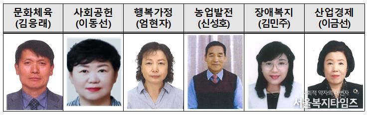 수상자는 △김응래 춘천시수영연맹 고문(문화체육 부문) △이동선 후평3동 지역사회보장협의체 위원(사회공헌 부문) △엄현자 사북면 지역사회보장협의체 위원(행복가정 부문) △신성호 한국후계농업경영인 춘천시연합회장(농업발전 부문) △김민주 춘천시지체장애인협회 운영위원(장애복지 부문) △이금선 ㈜세원개발·㈜세원산업 대표(산업경제 부문)다.