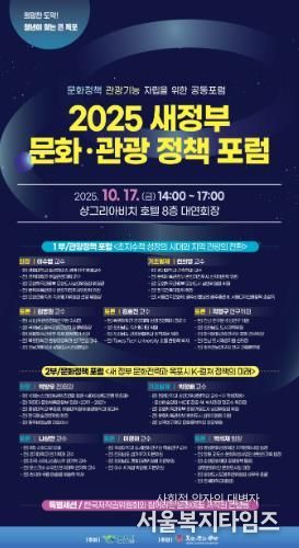 서울복지타임즈 이재연 기자 | 목포시와 (재)목포문화재단은 오는 10월 17일 오후 2시, 샹그리아비치호텔 8층 대연회장에서 ‘새정부 문화·관광 정책 포럼’을 개최한다.