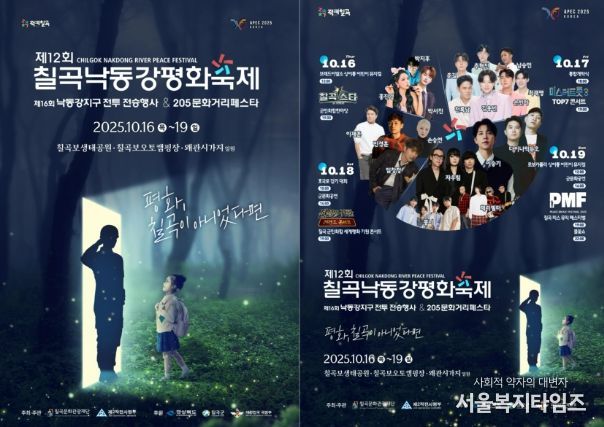 서울복지타임즈 이재연 기자 | 호국과 평화를 기치로 한 국내 유일의 민군(民軍) 통합 축제인 제12회 칠곡낙동강평화축제 및 제16회 낙동강지구전투 전승행사가 오는 10월 16일부터 19일까지 4일간 칠곡보생태공원 일원에서 열린다.