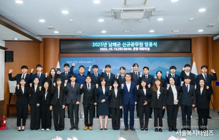 서울복지타임즈 이재연 기자 | 남해군은 15일 군청 대회의실에서 2025년도 신규공무원 27명이 참석한 가운데 임용식을 개최했다.
