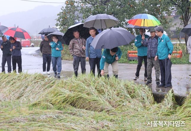 서울복지타임즈 이재연 기자 | 삼척시는 10월 16일 근덕면 매원리와 교가리 일원에서 최근 가을장마로 인한 벼 도복(倒伏, 작물 쓰러짐 현상) 피해 현장을 방문하고, 피해 농가의 애로사항을 청취했다.