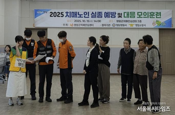 서울복지타임즈 이재연 기자 | 영암군보건소가 15일 치매안심센터에서 주민·경찰·소방관 등 50여 명이 참석한 가운데 ‘치매 노인 실종 예방 및 대응 모의훈련’을 실시했다.