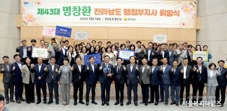 서울복지타임즈 이재연 기자 | 전라남도는 16일 도청 왕인실에서 제43대 명창환 행정부지사 퇴임식을 개최했다.