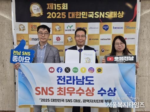 서울복지타임즈 이재연 기자 | 전라남도는 국내 최고 권위의 SNS 시상식인 ‘2025 대한민국 SNS 대상(KOREA SNS AWARD)’에서 광역자치단체 부문 최우수상을 수상했다고 밝혔다.