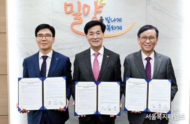 서울복지타임즈 이재연 기자 | 경남 밀양시는 16일 밀양시장실에서 한국재료연구원(원장 최철진), 한국남부발전(사장 김준동)과 밀양 나노융합 국가산업단지 중심의 탄소저감·글로벌 탄소 규제 대응을 위한‘탄소 저감·지역경제 공동 활성화 모델’ 개발을 위한 3개 기관 간 업무협약을 체결했다고 밝혔다.