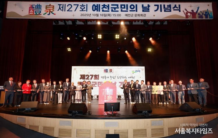 서울복지타임즈 이재연 기자 | 예천군은 16일 오후 3시, 예천군문화회관에서 ‘제27회 예천군민의 날 기념식’ 을 성황리에 개최했다. 이번 행사는 기관·단체장과 군민 등 500여 명이 참석한 가운데, 군민의 자긍심을 높이고 군민 화합을 도모하는 뜻깊은 자리로 마련됐다.