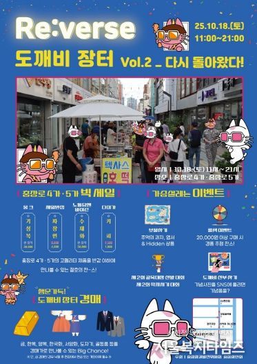 서울복지타임즈 이재연 기자 | 광주 동구는 오는 18일 충장로 4가 일대(옛 조흥은행 사거리)에서 지역 상권 활성화를 위한 특별한 장터 ‘제2회 RE:VERSE 도깨비장터 IN 충장로’를 개최한다고 밝혔다.