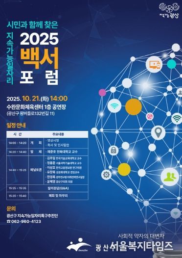 광주 광산구는 21일 오후 2시부터 수완문화체육센터에서 '시민과 함께 찾은 지속가능 일자리'를 주제로 2025 지속가능 일자리 백서 포럼(공개토론회)을 개최한다고 밝혔다.