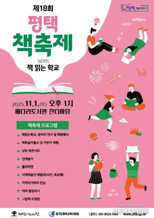 서울복지타임즈 이재연 기자 | 평택시의 대표 시민독서운동 ‘평택, 책을 택하다’ '2025 평택 책축제 with 책 읽는 학교'가 오는 11월 1일 토요일 오후 1시 배다리도서관 잔디마당에서 개최된다.