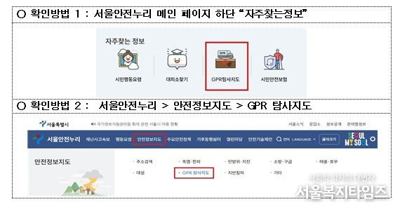 GPR 탐사 결과와 조치 현황은 시민에게 투명하게 공개하고 있다. 시는 ‘서울안전누리’ 내 ‘GPR 탐사지도’(서울안전누리→안전정보지도→GPR 탐사지도)를 통해 '14년 11월 이후 발견·조치 완료한 공동 7,760개의 위치, 발견일, 규모, 조치결과 등 정보를 제공하고 있다.