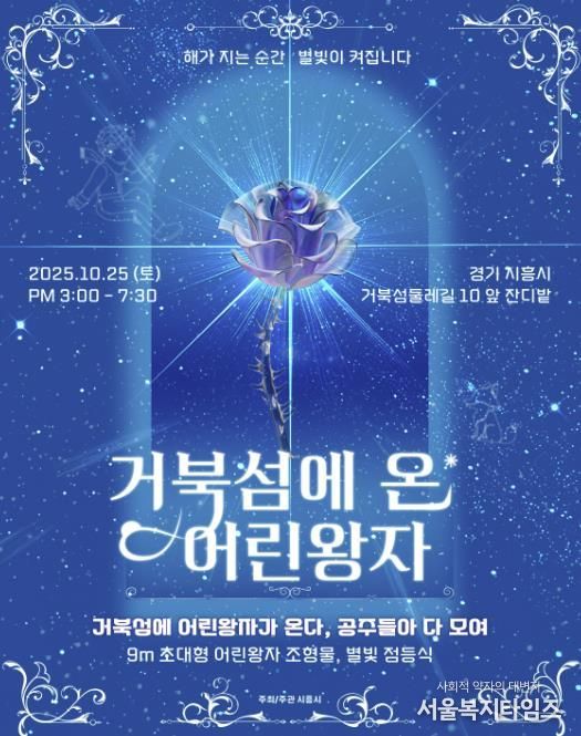 서울복지타임즈 이재연 기자 | 시흥시는 오는 10월 25일 오후 3시부터 7시 30분까지 거북섬둘레길 10 앞 잔디광장에서 ‘거북섬에 온 어린왕자 별빛 점등식’을 개최한다.