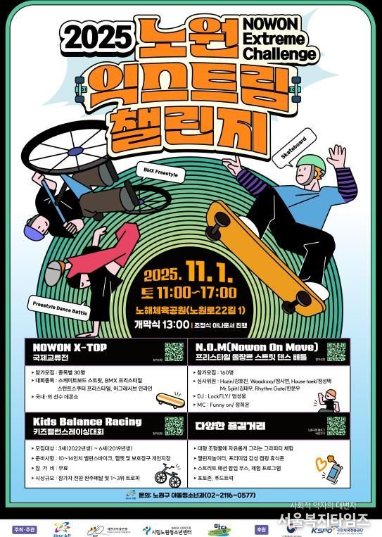서울복지타임즈 이재연 기자 | 서울 노원구가 다음 달 1일 노해체육공원에서 '2025 노원 익스트림 챌린지(NOWON Extreme Challenge)'를 개최한다고 밝혔다.