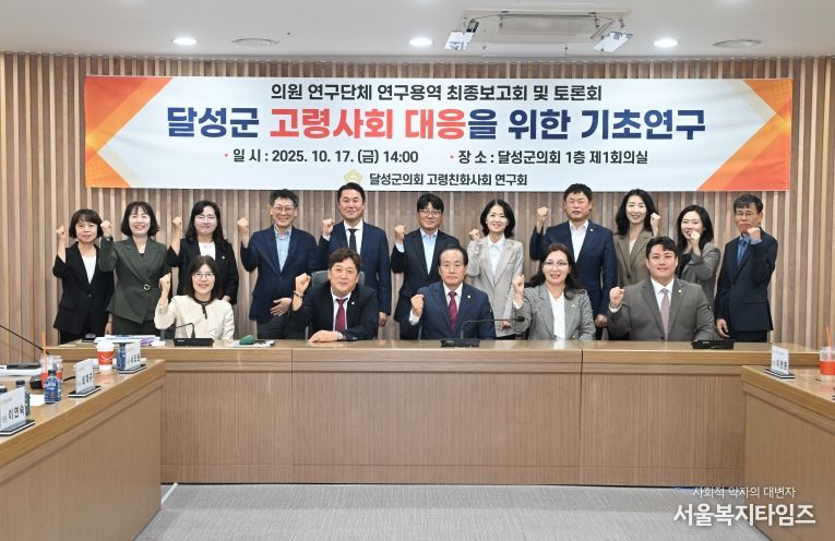 서울복지타임즈 이재연 기자 | 달성군의회는 17일 오후 3시, 의회 1층 제1회의실에서 '달성군 고령친화도시 구현을 위한 정책토론회'를 개최했다. 이번 토론회는 고령사회 진입에 따른 달성군의 대응 방향을 모색하고, 지역 실정에 맞는 고령친화 정책 수립을 논의하기 위해 마련됐다.