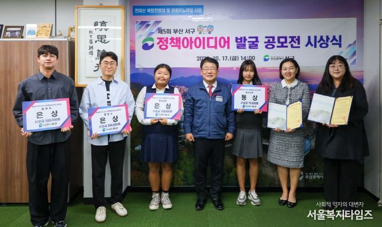 서울복지타임즈 이재연 기자 | 부산 서구는 지난 10월 17일 ‘제5회 정책아이디어 발굴 공모전’ 시상식을 열고 주민과 청소년이 제안한 우수 아이디어를 시상했다.