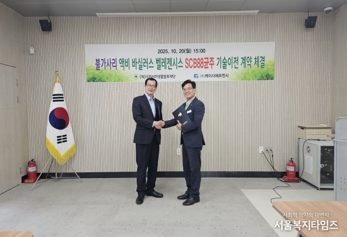 서울복지타임즈 이재연 기자 | (재)사천시미생물발효재단은 주식회사 케이시에프엔시(경기도 용인시 소재)와 “불가사리 액비 생균제에 활용되는 바실러스 벨레젠시스 SCB88 균주”에 대한 기술이전을 체결했다고 20일 밝혔다.