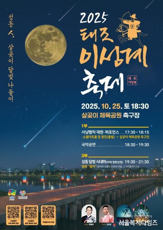서울복지타임즈 이재연 기자 | 서울 성동구는 오는 10월 25일 살곶이 체육공원 일대에서 '2025년 태조 이성계 축제'를 개최한다고 밝혔다.
