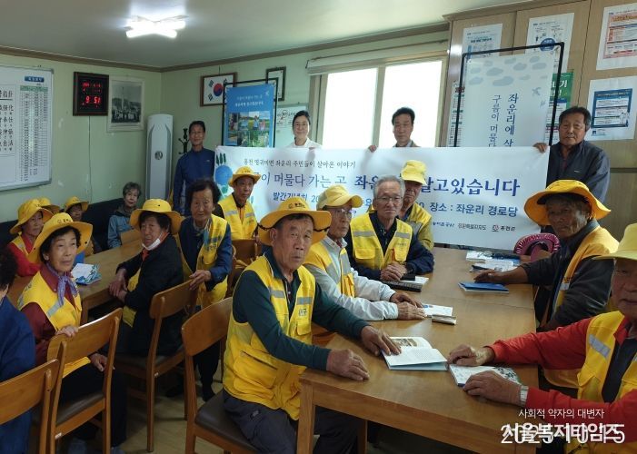 서울복지타임즈 이재연 기자 | 숲속마당 협동조합은 농림축산식품부, 농어촌공사, 강원도청, 홍천군의 후원을 받아 진행되는 ‘2025년 농촌 돌봄서비스 활성화 지원사업’의 일환으로, 홍천군 영귀미면 좌운리 주민들의 삶과 마을의 역사를 담은 책 『구름이 머물다 가는 곳, 좌운리에 살고 있습니다』를 발간했다. 책 발간을 기념해 10월 15일 좌운리 경로당에서 발간기념회도 함께 열렸다.