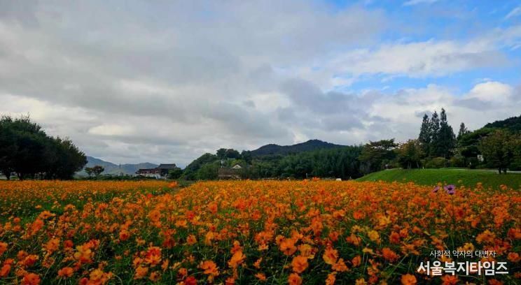마을 초입을 수놓은 황금빛 코스모스는 가을 정취와 전통마을의 풍경을 조화롭게 담아내며, 2025 APEC 정상회의를 맞아 경주를 찾는 방문객들에게 특별한 감동을 선사할 것으로 기대된다.
