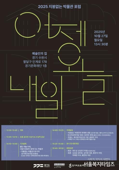 서울복지타임즈 이재연 기자 | 경기도와 경기문화재단은 일상 곳곳의 발자취를 ‘박물관’으로 만드는 지붕없는 박물관(경기에코뮤지엄)사업의 '2025 지붕없는 박물관 포럼_어제·오늘·내일'을 10월 27일 오후 1시 30분 경기문화재단 예술인의 집(수원)에서 개최한다.