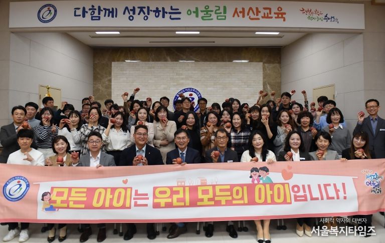 서울복지타임즈 이재연 기자 | 충청남도서산교육지원청은 21일 전 직원이 참여하는 '사과데이 나눔행사'를 열었다.