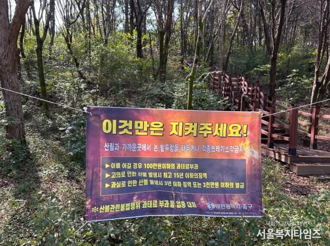 서울복지타임즈 이재연 기자 | 대전 중구는 기상여건 등을 고려한 산불 대응 강화를 위해 예년보다 12일 앞당겨 지난 20일부터 오는 12월 15일까지를 가을철 산불조심기간으로 지정했다.