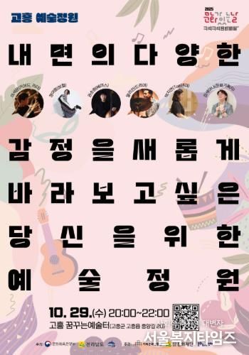 서울복지타임즈 이재연 기자 | 고흥군과 고흥군 문화도시센터는 ‘10월 문화가 있는 날 구석구석 문화배달–고흥예술정원’ 프로그램을 오는 10월 29일 오후 8시, 고흥 꿈꾸는예술터에서 진행한다고 밝혔다.