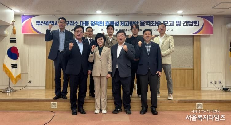 서울복지타임즈 이재연 기자 | 부산광역시의회 의원연구단체 '저출산대응정책연구모임' 에서 '부산광역시 인구감소 대응 정책의 효율성 제고방안'에 대한 연구용역 최종보고회를 10월21일 부산광역시의회 의원회관 회의실에서 개최했다.