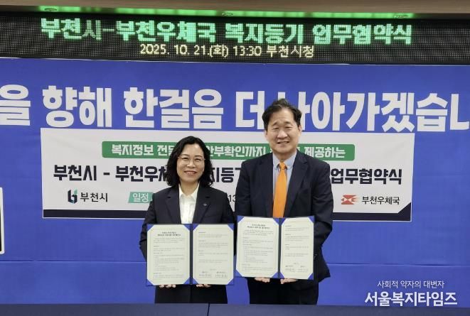 서울복지타임즈 이재연 기자 | 부천시는 지난 21일 부천우체국과 ‘복지등기 서비스 지원’을 위한 업무협약을 맺고, 우편배송망을 활용해 복지사각지대를 발굴하고 위기가구를 지원하는 공공협력 체계를 본격적으로 가동한다.