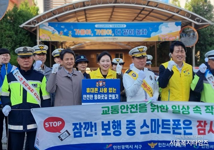 서울복지타임즈 이재연 기자 | 서구의회 서지영 의원(더불어민주당, 가정1~3동·신현원창동)은 22일 오전 8시 가원초등학교 등굣길에서 진행된 기관합동 캠페인에 참여하고 학교 민원 청취 간담회를 열었다. 이날 캠페인은 서지영 의원을 비롯해 강범석 서구청장, 가원초 최정민 교장, 서부경찰서, 서부교육지원청 관계자 등이 함께했다.