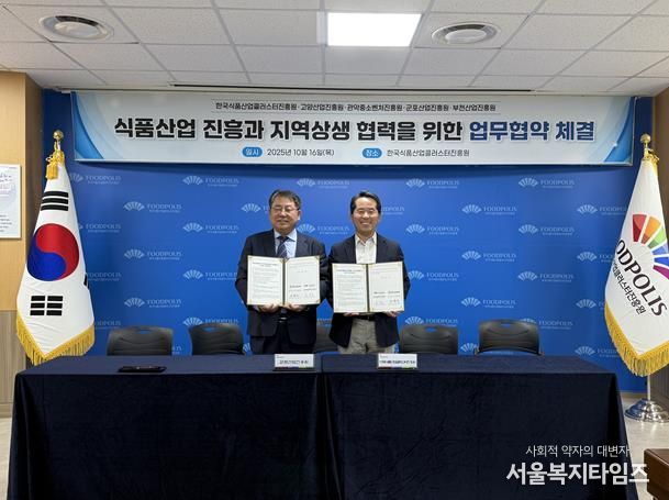 서울복지타임즈 이재연 기자 | 군포산업진흥원은 10월 16일 한국식품산업클러스터진흥원과 군포시 식품산업 발전과 식품 제조·가공 기업 육성과 경쟁력 강화를 위한 업무협약(MOU)을 체결했다고 밝혔다.