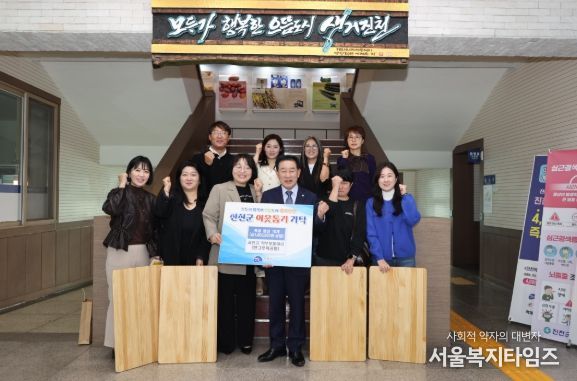 서울복지타임즈 이재연 기자 | 서전고 학부모동아리(회장 홍세연)와 한그루목공방(공방장 김태우)은 23일 진천군을 방문해 정성껏 제작한 목공 밥상(100만원 상당)을 기탁했다.