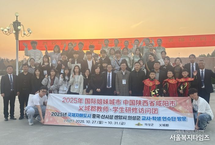 서울복지타임즈 이재연 기자 | 의성군은 10월 27일부터 31일까지(4박 5일) 의성교육지원청 전영배 교육지원과장을 단장으로 하는 교류단 25명(중·고등학생 및 인솔자 등)이 국제자매결연 도시인 중국 셴양시(咸陽市)를 방문해 다양한 문화체험 활동을 진행하고 있다고 밝혔다.