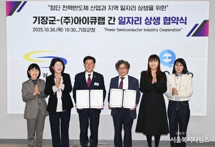 서울복지타임즈 이재연 기자 | 기장군은 30일 전력반도체 분야 첨단 기술기업인 ㈜아이큐랩과 ‘지역 일자리 상생 협약’을 체결하고, 지역 일자리 창출에 박차를 가한다고 밝혔다.