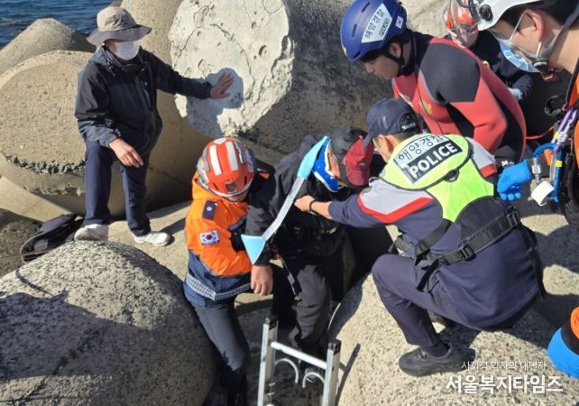 서울복지타임즈 이재연 기자 | 울산해양경찰서(서장 안철준)는 1일 오전 10시 25분경 울산 방어진 슬도방파제 인근 TTP(테트라포트) 추락자 A씨(60대. 남. 울산거주)를 소방과 합동으로 신속히 구조했다고 밝혔다.