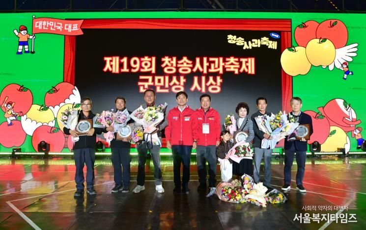 또한 축제 기간 중 열린 사과왕 시상식과 군민상 시상식이 축제의 의미를 한층 더했다. 사과왕 시상식에서는 ▲사과왕 조용태(안덕면) ▲우수상 김창율(부남면) ▲장려상 정무상(현서면) ▲황금진 도재범(안덕면) 씨가 수상의 영예를 안았으며, 군민상 시상식에서는 ▲임윤기(주산지리 이장) ▲권오영(신기2리 이장) ▲남법식(현동면체육회 부회장) ▲김영조(부남면 지역사회보장협의체 민간위원장) ▲권영선(바르게살기운동청송군협의회 회장) ▲권태욱(명성 TNS 전 대표) 씨가 수상했다.