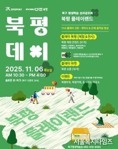 서울복지타임즈 이재연 기자 | 광주광역시 북구가 올 한 해 추진한 평생학습 사업의 성과를 공유하는 ‘2025 북평데이, 북평 플레이랜드’ 행사를 오는 6일 솔로몬 로파크(북구 오문로 244)에서 개최한다고 4일 밝혔다.