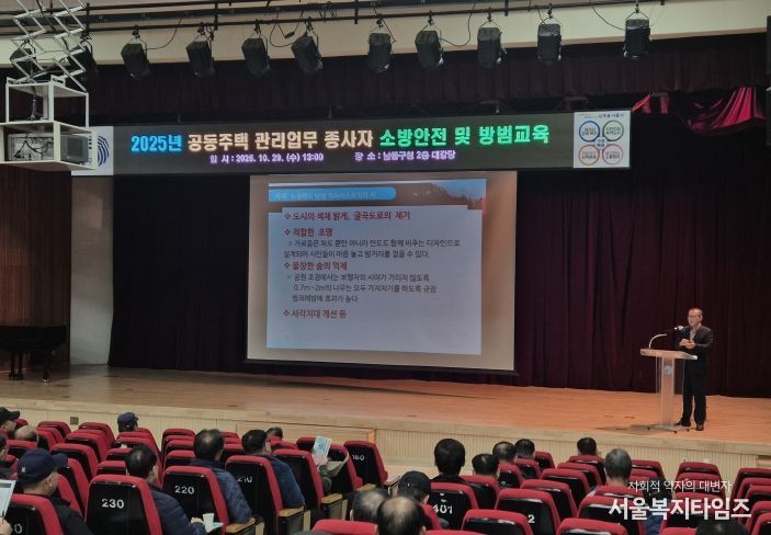 서울복지타임즈 이재연 기자 | 인천시 남동구는 최근 구청 대강당에서 의무관리대상 공동주택 관리업무 종사자를 대상으로 2025년 공동주택 소방안전 및 방범 교육을 했다고 4일 밝혔다.
