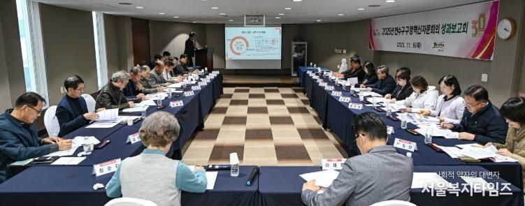 서울복지타임즈 이재연 기자 | 연수구는 지난 6일 경기도 양평군 더힐하우스 세미나실에서 주요 핵심사업과 정책 추진 성과를 공유하는 ‘2025년 연수구 구정혁신자문회의 성과보고회’를 개최했다.