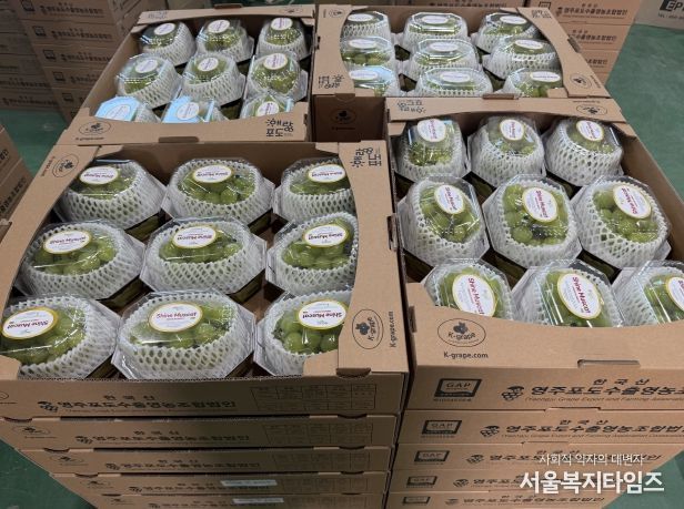 서울복지타임즈 이재연 기자 | 영주시는 지난 10일 순흥면 회헌로 1040-13 소재 영주포도수출영농조합법인(대표 배석준)에서 영주 샤인머스캣의 대만 수출을 기념하는 선적식을 개최했다.