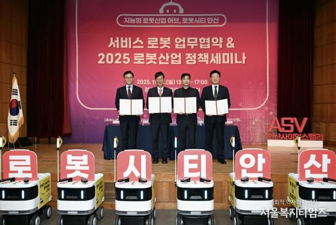서울복지타임즈 이재연 기자 | 안산시는 지난 10일 (재)경기테크노파크 다목적실에서 관내 기업들과 ‘서비스로봇 업무협약·안산시 로봇산업 정책세미나’를 개최하고, 국내 최초로 캠퍼스형 자율주행 배달로봇 ‘개미’를 도입한다고 11일 밝혔다.