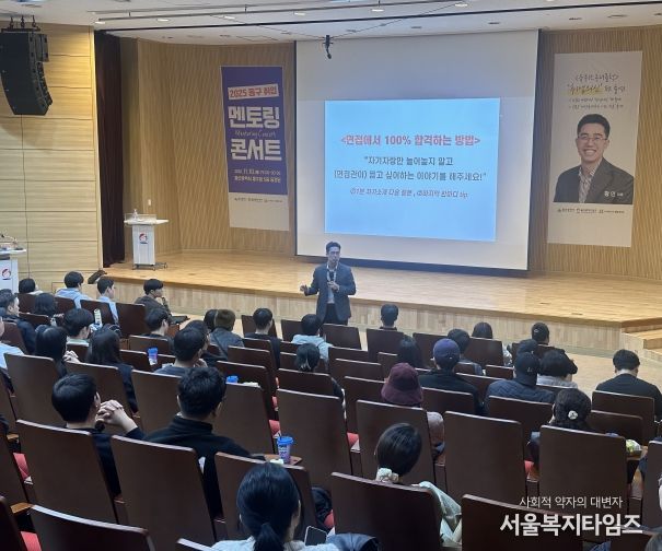 서울복지타임즈 이재연 기자 | 울산 동구는 지난 11월 10일 오후 7시 동구청 5층 중강당에서 유명 취업 강사인 황인 강사를 초청해 ‘2025 동구 취업 멘토링 콘서트’를 성공적으로 개최했다.