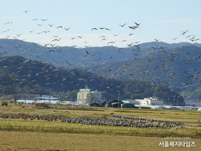 서울복지타임즈 이재연 기자 | 순천시는 안풍들 일대 전봇대 제거로 흑두루미 서식지를 확대한 결과, 멸종위기Ⅰ급인 황새가 순천만에서 관찰됐다고 밝혔다.